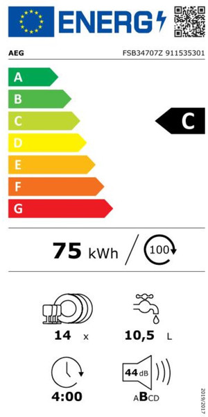 AEG FSE75748P / Built-in / Fully Integrated / Niche height 82-90cm Energy-efficient built-in dishwasher