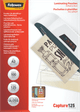 The laminating pouches contain text and drawings on one side ('Fellowes, premium pouches' and 'Image Last, captured for life'). Unfortunately, after laminating, this text is also “captured for life”, and therefore still visible... too bad!