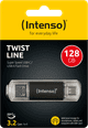 You can easily transfer your files from device to device with the Intenso Twist Line USB-A/C 3.2 128GB USB flash drive. This USB flash drive has a USB-C and USB-A port and allows you to quickly switch between a smartphone with USB-C port, and a laptop with USB-A port. With 128GB, you have enough storage space for 1280 music albums or 128,000 photos. You can also transfer your files up to 10 times faster than with USB 3.0 connector, thanks to the 3.2 USB port. This way, your videos, images, or documents are quickly at hand. The protective cover on both sides protect your USB flash drive from damage.