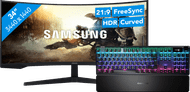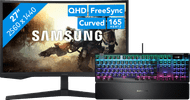 Move through your favorite shooter or racing game super fast with the Samsung Odyssey G5 LS27CG552EUXEN + SteelSeries Apex Pro Gaming Keyboard AZERTY bundle. The Odyssey G5 27-inch monitor has a 165Hz refresh rate. In combination with the Omnipoint 2.0 switches of the wired Apex Pro gaming keyboard, this ensures you quickly see your opponents. That way, you're the fastest player in the game. Thanks to the 1ms response time of the Odyssey G5 monitor, you're not bothered by screen tearing or ghosting. You can keep gaming comfortably because of the curved screen and the magnetic wrist rest of the keyboard. Complete your gaming setup with the RGB lighting of the keyboard.