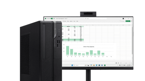 Créez des bilans et des budgets et sécurisez-les grâce à la puce TPM discrète. Vous pouvez travailler en toute fluidité dans plusieurs feuilles de calcul à la fois.PC de bureau pour les feuilles de calcul et les présentations