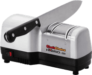 Utilisez l'affûteur CC4643 de Chef'sChoice pour rendre vos couteaux de cuisine tranchants à nouveau. L'affûteur présente une forme pratique pour que vous puissiez le tenir fermement, et affûter facilement chaque couteau en 3 pas. Les couteaux européens et asiatiques s'affûtent sans effort avec une coupe lisse ou dentelée. Les 2 premières étapes sont destinées à l'affûtage et avec la troisième étape, vous polissez le couteau. Vous utilisez également la dernière étape entre les grands tours d'entretien pour remettre à neuf les couteaux de temps en temps. Les guides de précision vous assurent d'aiguiser toujours dans le bon angle. Avec cet affûteur, aiguiser est simple, sûr et efficace et vous aurez toujours des couteaux tranchants à la maison.