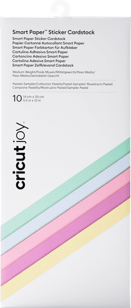 Avec le Cricut Joy Smart Sticker Cardstock 14 cm x 33 cm Pastel Lot de 10, collez directement vos créations sur le papier. La colle liquide qui coule ou les bâtons de colle qui ne fonctionnent jamais vraiment ne sont plus nécessaires. L'utilisation des matériaux Cricut Smart ne nécessite pas de tapis de découpe. Il suffit de concevoir votre création dans l'appli Design Space, de la découper avec la machine de découpe, de retirer la couche de protection du papier cartonné autocollant et de la coller. Simple comme bonjour. Ce matériau est adapté à la Cricut Joy.