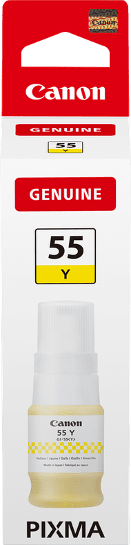 Imprimez des photos en couleurs lumineuses et éclatantes avec la Canon GI-55 Bouteille d'Encre Jaune. Cette bouteille d'encre permet d'imprimer jusqu'à 3000 pages couleur. Découvrez ci-dessous les imprimantes compatibles avec cette cartouche d'encre :