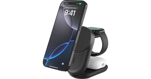 Belkin UltraCharge Chargeur Sans Fil 2-en-1 MagSafe avec Support Qi2 25 W Noir