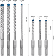 Boren in steen? Geen probleem voor de Bosch Robust Line 7-delige Steenborenset. Deze boren hebben een diameter van 4, 5, 6, 8, 10 of 12 millimeter en zijn te bevestigen op een snelspan boorkop.