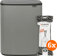 Dankzij de meegeleverde vuilniszakken van de Brabantia Bo Touch Bin 60 Liter Mineral Concrete Grey + Vuilniszakken (120 stuks) is jouw prullenbak gelijk gebruiksklaar. Door de ruime inhoud is de prullenbak geschikt voor een groot huishouden. Je opent de prullenbak gemakkelijk met een lichte aanraking op de deksel dankzij het Soft Touch systeem. De binnenemmer haal je eenvoudig uit de bak, waardoor je snel de vuilniszak vervangt en de prullenbak schoonmaakt. Door de grote opening belandt je afval niet meer naast de bak. Bij het legen van bijvoorbeeld een stoffer en blik is dit erg handig. Door de handvatten verplaats je de prullenbak gemakkelijk, bijvoorbeeld als je `m even buiten zet om te luchten.