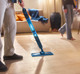 De Philips OneUp is makkelijk in gebruik. Het apparaat weegt weinig en ik beweeg 'm soepel door m'n huis. Ik draai de dweilkop makkelijk rond meubels en schoonmaken in hoeken kost zo ook weinig moeite. Door de brede dweildoek neem ik in één beweging een groot stuk vloer mee. Zo ben ik sneller klaar met dweilen.
