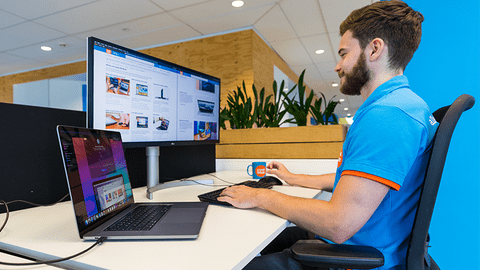 Met de Samsung Viewfinity S95UF LS49F950UAUXEN werk je overzichtelijk aan grote projecten. Deze monitor toont beelden bijna 2 keer scherper dan full hd door de quad hd resolutie. Hierdoor lees je grafieken en teksten goed, zelfs als je meerdere vensters naast elkaar opent. Dankzij de super ultrawide beeldverhouding van 32 op 9 heb je het grootste gezichtsveld. Je opent meerdere bewerkingsprogramma's tegelijk zonder storende schermranden in het midden. Het curved scherm kromt om je gezichtsveld heen, waardoor je minder met je hoofd draait en minder last krijgt van je nek. Met de ingebouwde usb C dock sluit je je laptop, toetsenbord of tweede monitor aan met één kabel, waardoor je bureau opgeruimd blijft.