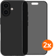 BlueBuilt Back Cover iPhone 16 Zwart + Privacy Filter Screenprotector Glas Duo Pack